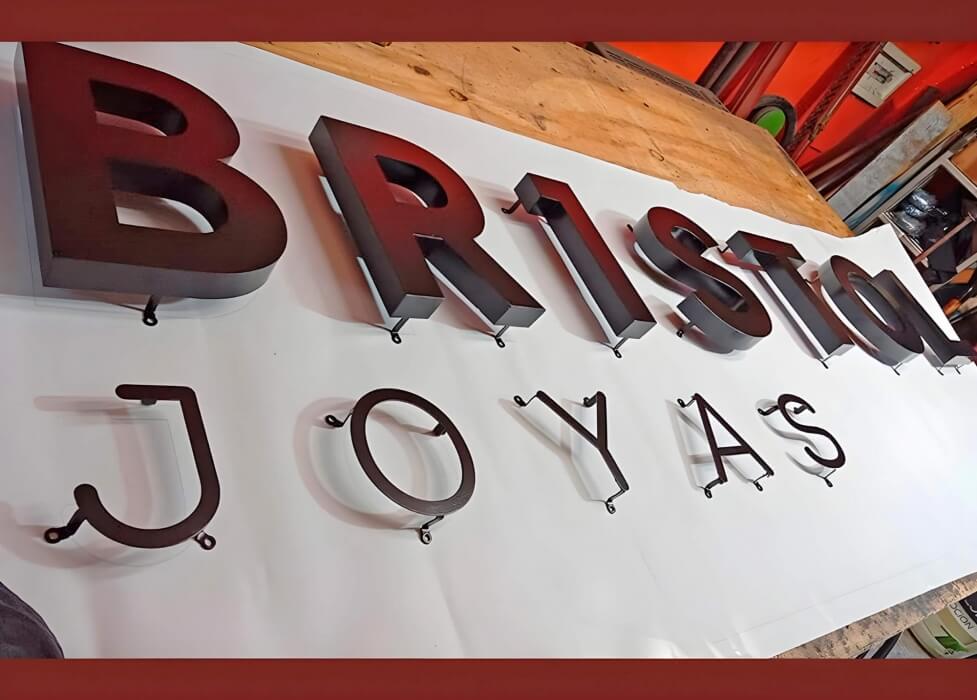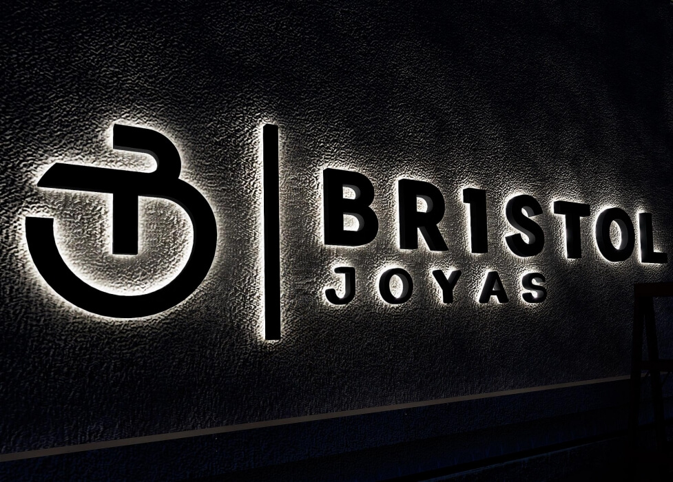 BRISTOL JOYAS, letras de metal, luminosos.